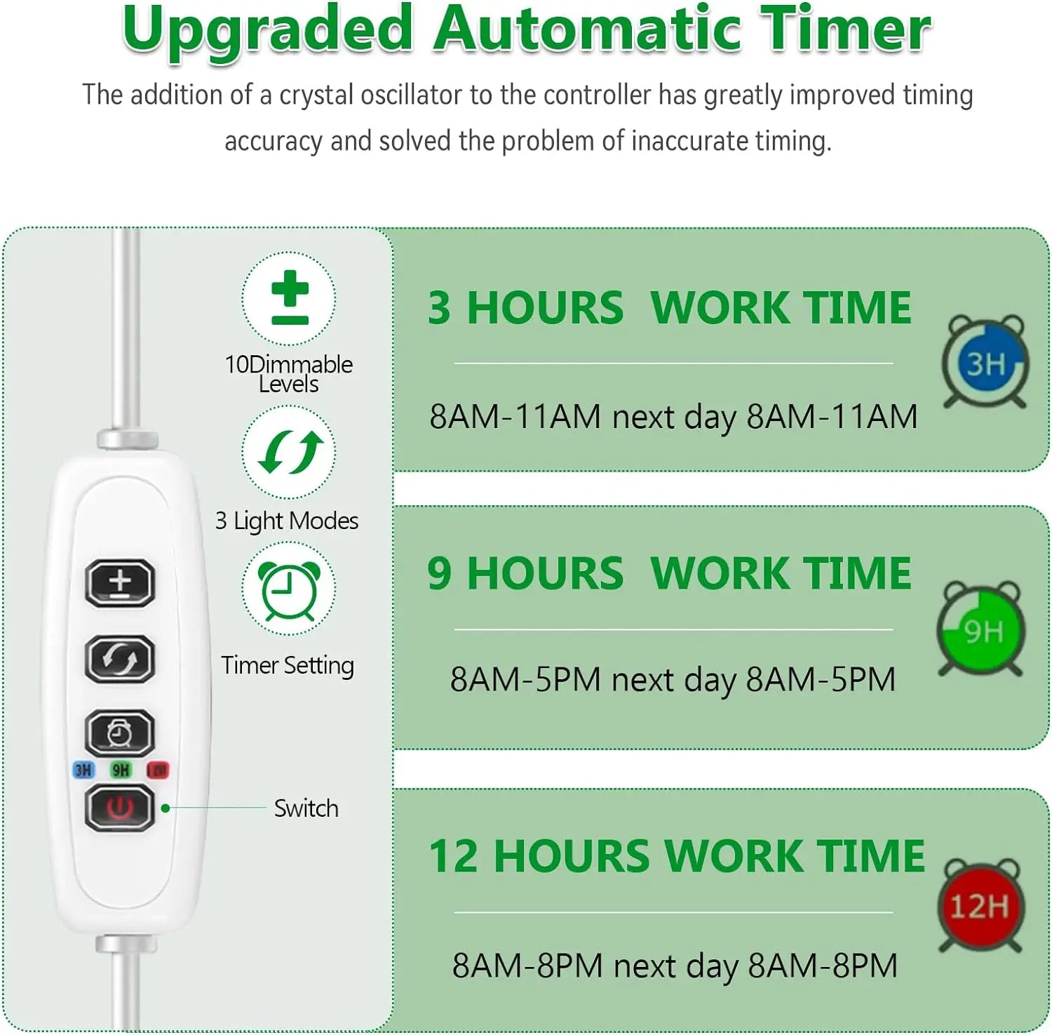 💡 Smart timer settings – 3/9/12-hour modes for hands-free operation